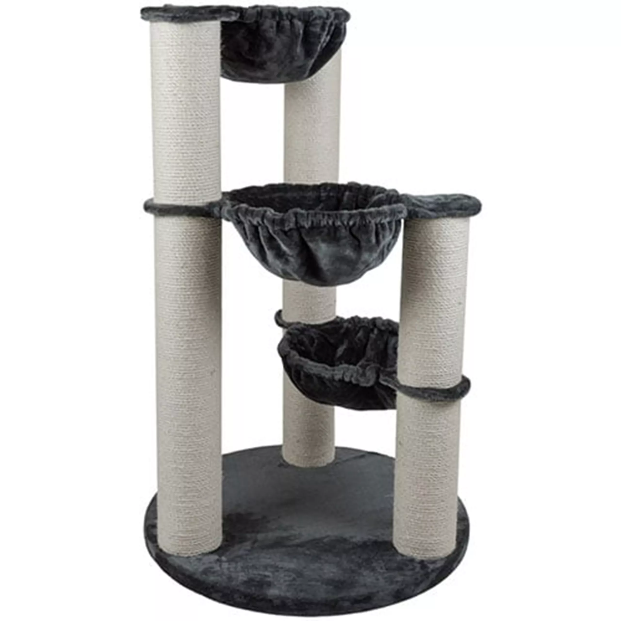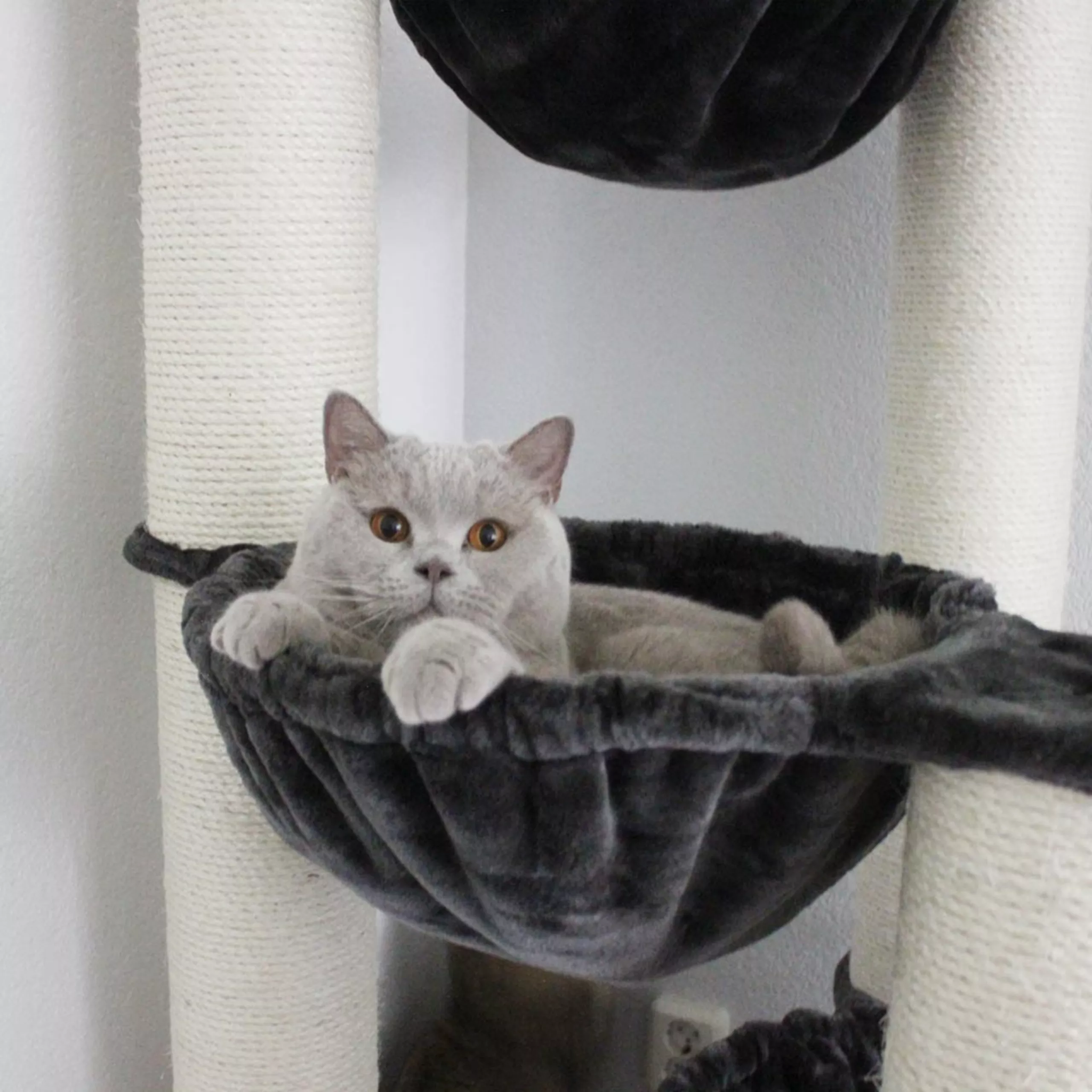 Covered with 680 g/m² plush fabric, the hammocks are soft and cozy. The tall sisal posts provide plenty of scratching options, while the sturdy design ensures safety and comfort. A stylish, functional centrepiece for every cat-loving home.