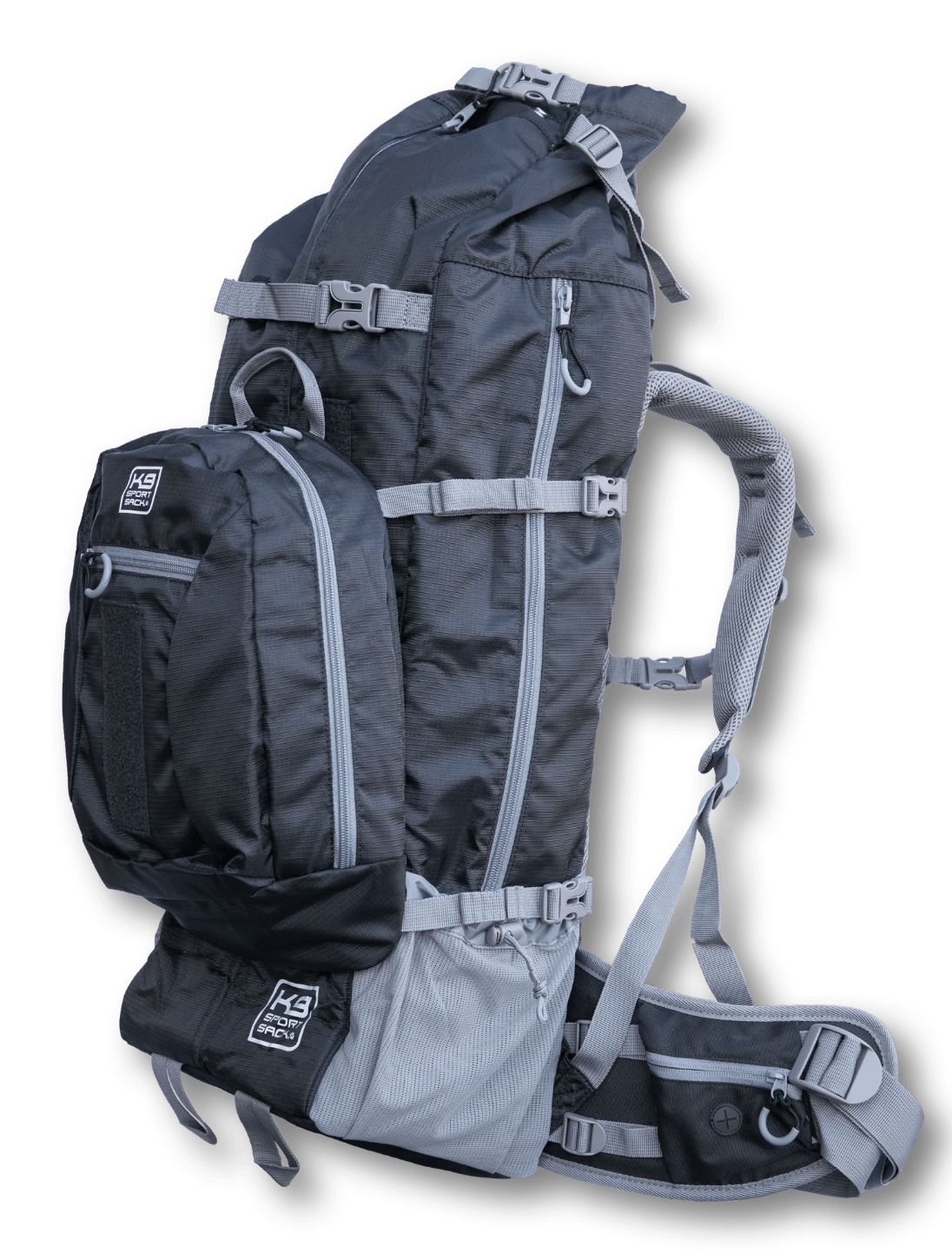 Avec capuche soleil/pluie amovible, fermetures ventilées et sangles de répartition du poids, le Kolossus est parfait pour randonnées, vélo et voyages.
