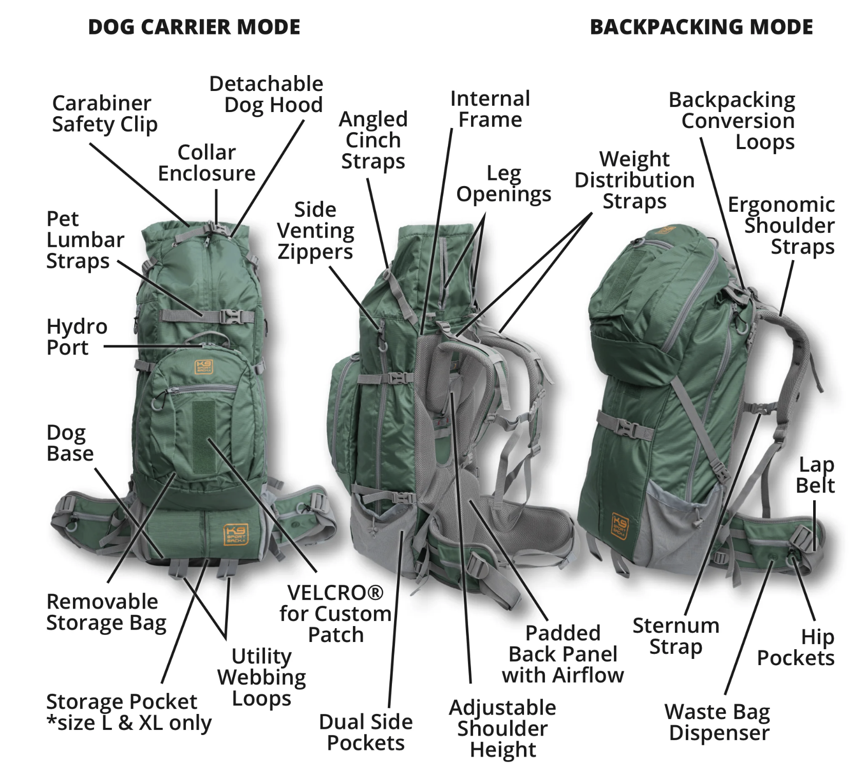 Tous les sacs de transport K9 Sport Sack sont spécialement conçus sous la supervision étroite de professionnels des animaux de compagnie, de vétérinaires, de dresseurs de chiens et d'ingénieurs spécialisés dans les produits de plein air, afin d'être ergonomiques, sûrs et résistants.