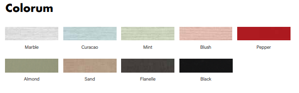 - Marble / Mint / Blush / Pepper / Almond / Sand / Flanelle / Black