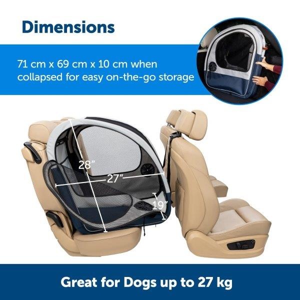 De Happy Ride® Collapsible Travel Carrier is de ideale reisoplossing voor honden die graag mee op avontuur gaan. Deze ruime, opvouwbare hondenbench past perfect op één autostoel, zodat er altijd plek overblijft voor andere passagiers. Dankzij het slimme ontwerp voelt uw hond zich comfortabel en geborgen, met optimale ventilatie en zicht naar buiten via de grote mesh-panelen aan de voor- en zijkanten.